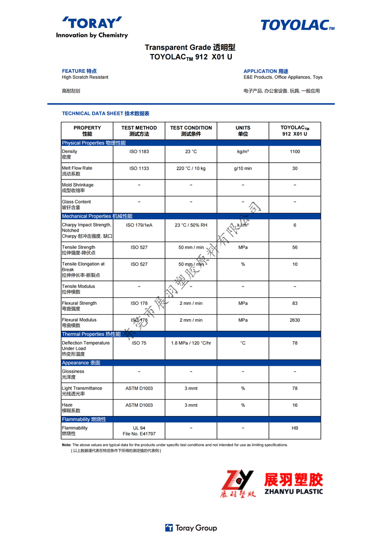 東麗 MABS 912 X01 U 耐刮擦 高沖擊 透明ABS 電子產(chǎn)品 辦公室設(shè)備 玩具應(yīng)用