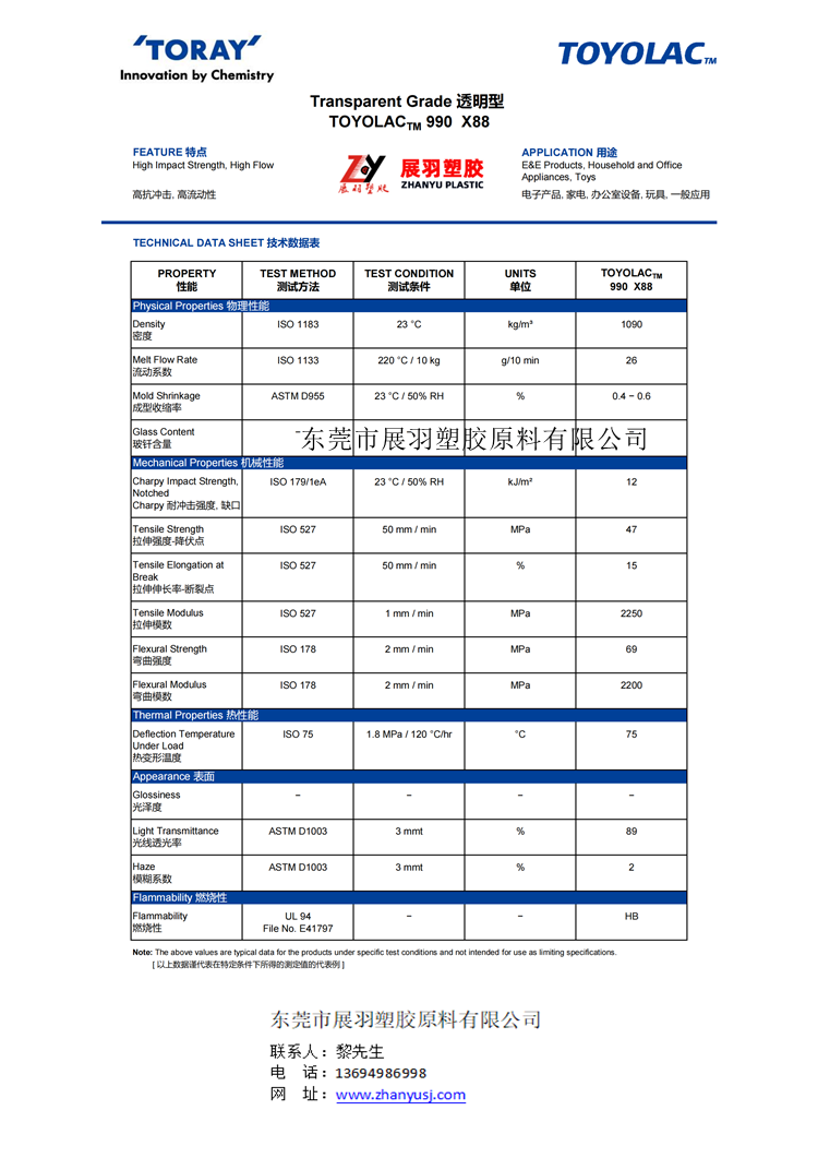 MABS 東麗 Toyolac 990 X88 透明 高流動性 高沖擊 家電應(yīng)用 化妝品 汽車領(lǐng)域