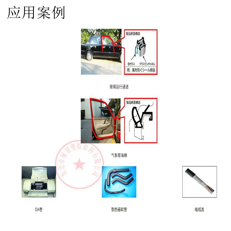 窗導(dǎo)槽密封條、密封條海綿、OA滾筒、散熱器軟管、電線護(hù)套線。