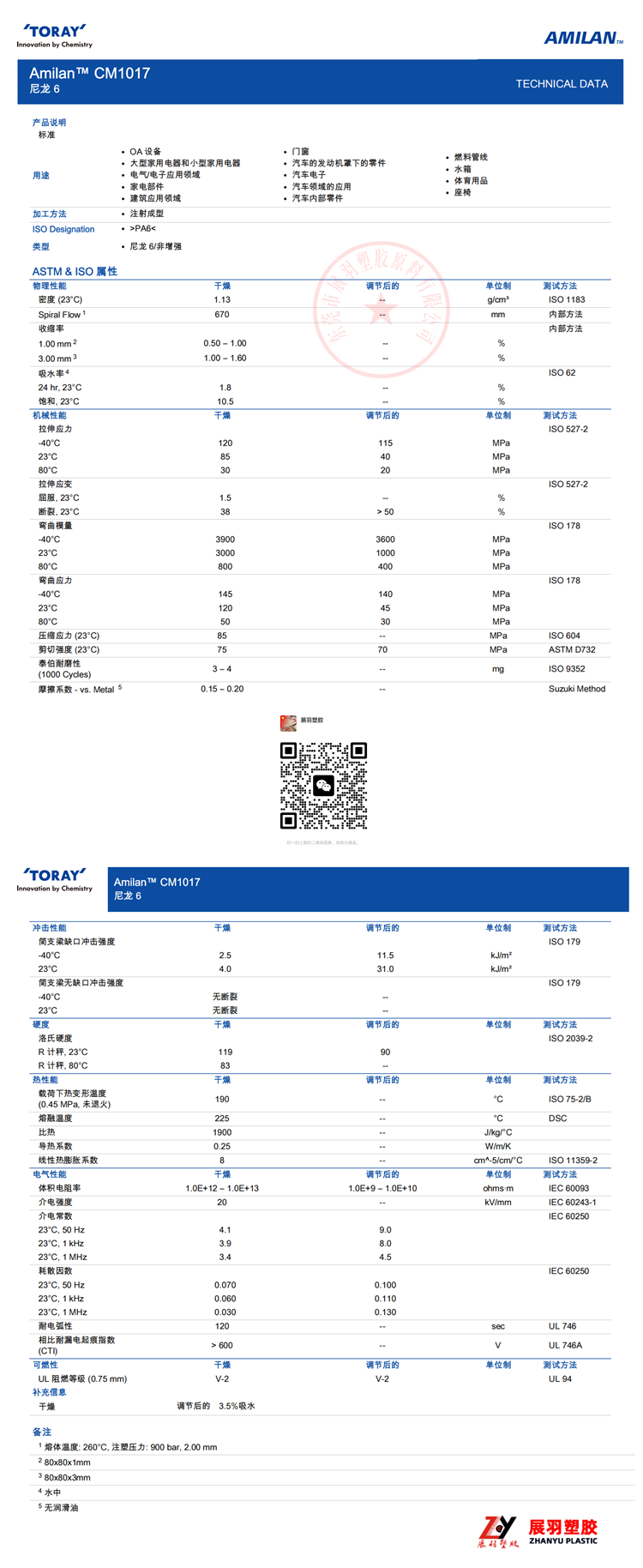 PA6 東麗 Amilan CM1017 尼龍6 非增強 標準級 電子電器 汽車領(lǐng)域的應用