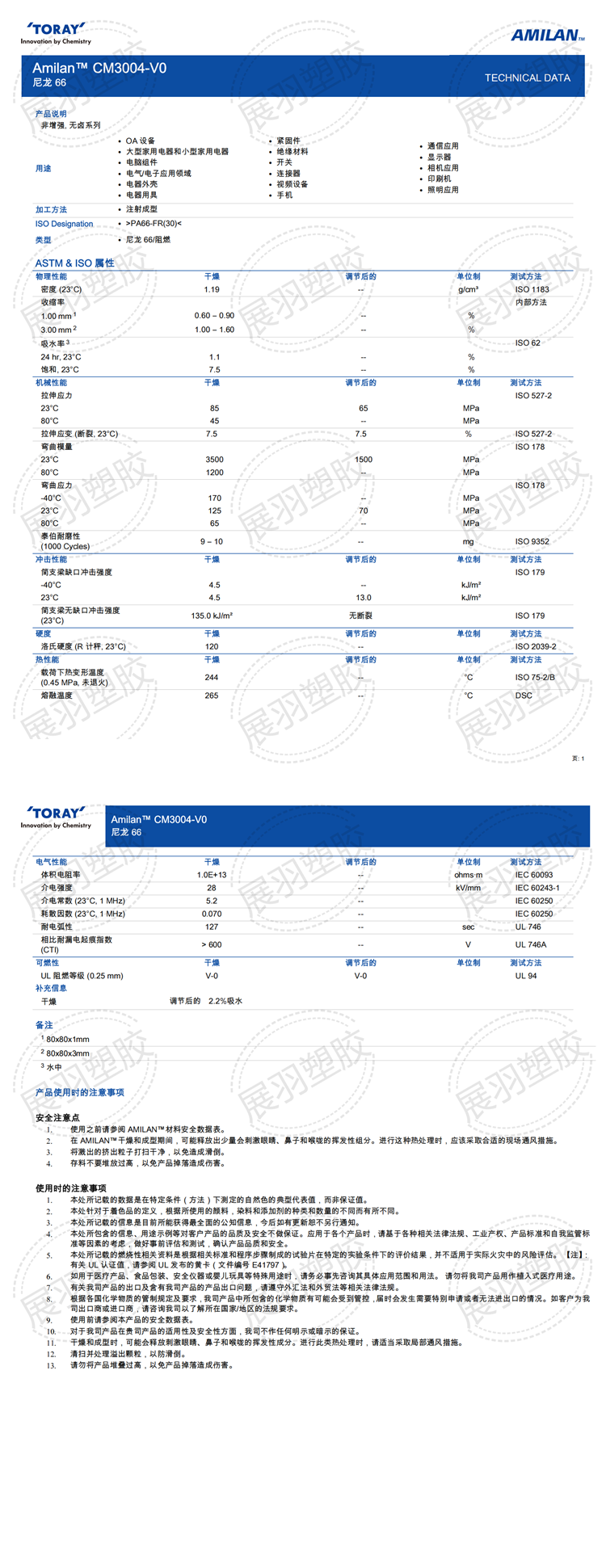 PA66 東麗 Amilan CM3004-V0 尼龍66阻燃 非增強 無鹵系列 電子電器 汽車領(lǐng)域