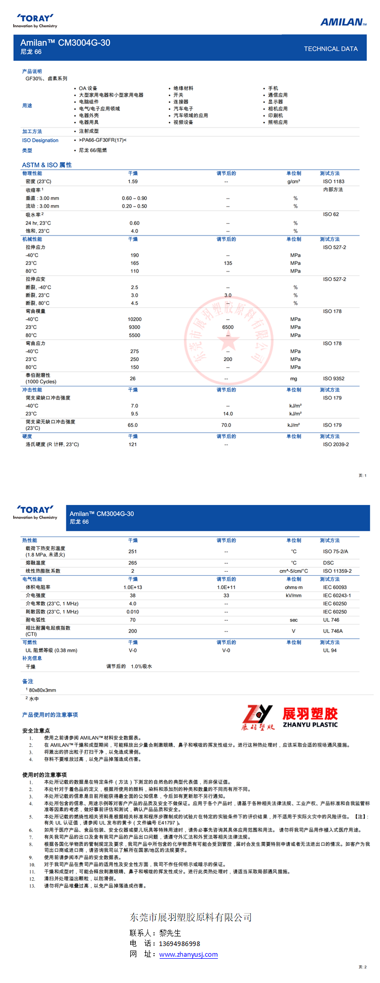阻燃等級(jí): V-0 缺口沖擊: 7.0 kJ/m2 符合規(guī)定: RoHS ? UL