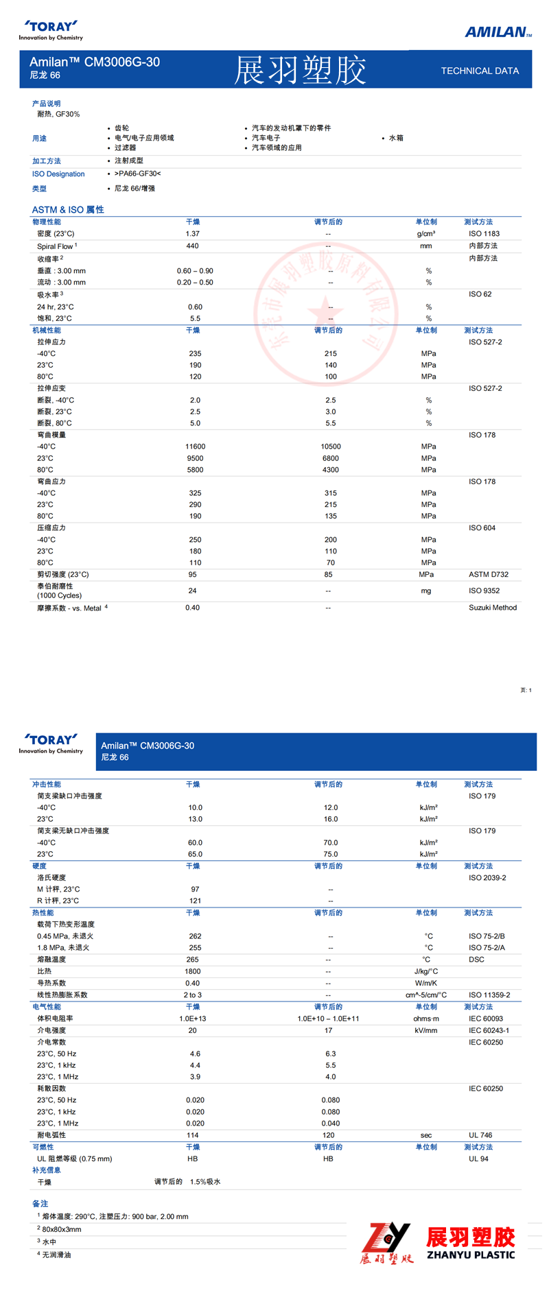 東麗 Amilan CM3006G-30 耐熱級(jí)(PA66-GF30)玻纖增強(qiáng)30% 聚酰胺66