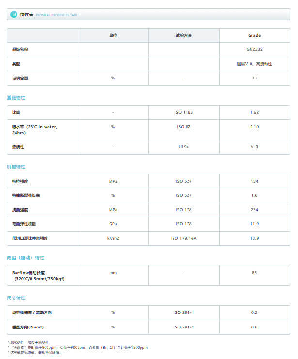 日本可樂麗公司的GENESTAR? GN2332是一種含33%玻璃纖維增強(qiáng)的高流動(dòng)性聚酰胺9T (PA 9T)級材料。它是阻燃的。