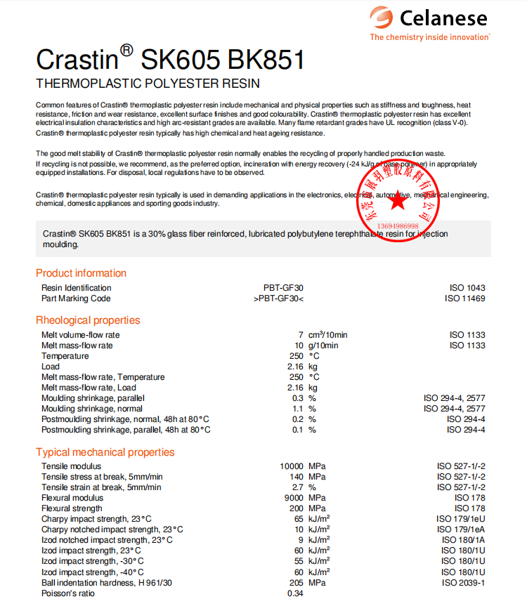 Crastin SK605 BK851是一種30%玻璃纖維增強(qiáng),潤(rùn)滑聚對(duì)苯二甲酸丁酯用于注射成型樹(shù)脂。