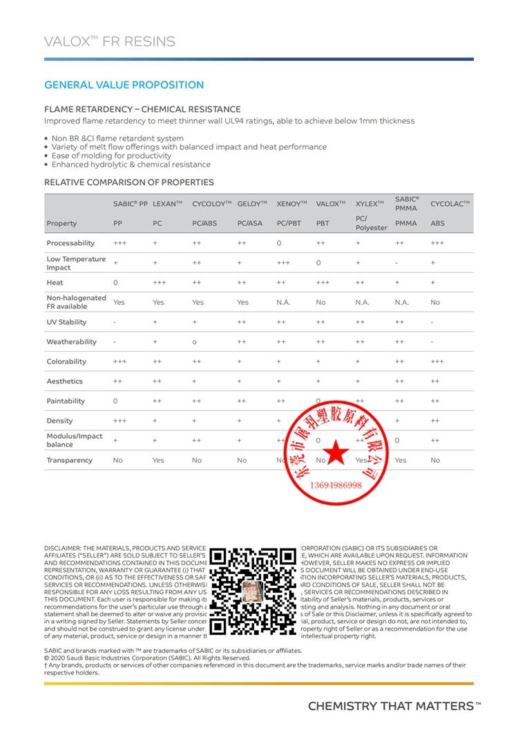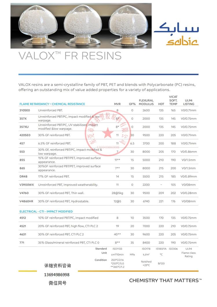 VALOX 310SE0 SABIC 未填充的阻燃聚對苯二甲酸丁二醇酯 (PBT) 樹脂