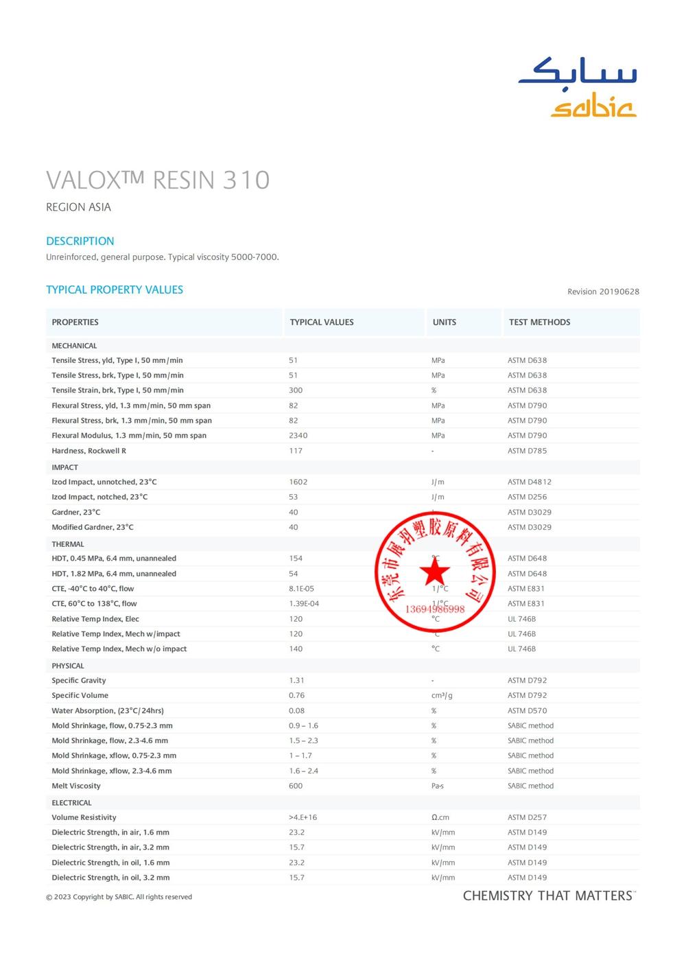 VALOX 310 SABIC 未增強(qiáng) 聚對苯二甲酸丁二醇酯 (PBT) 樹脂