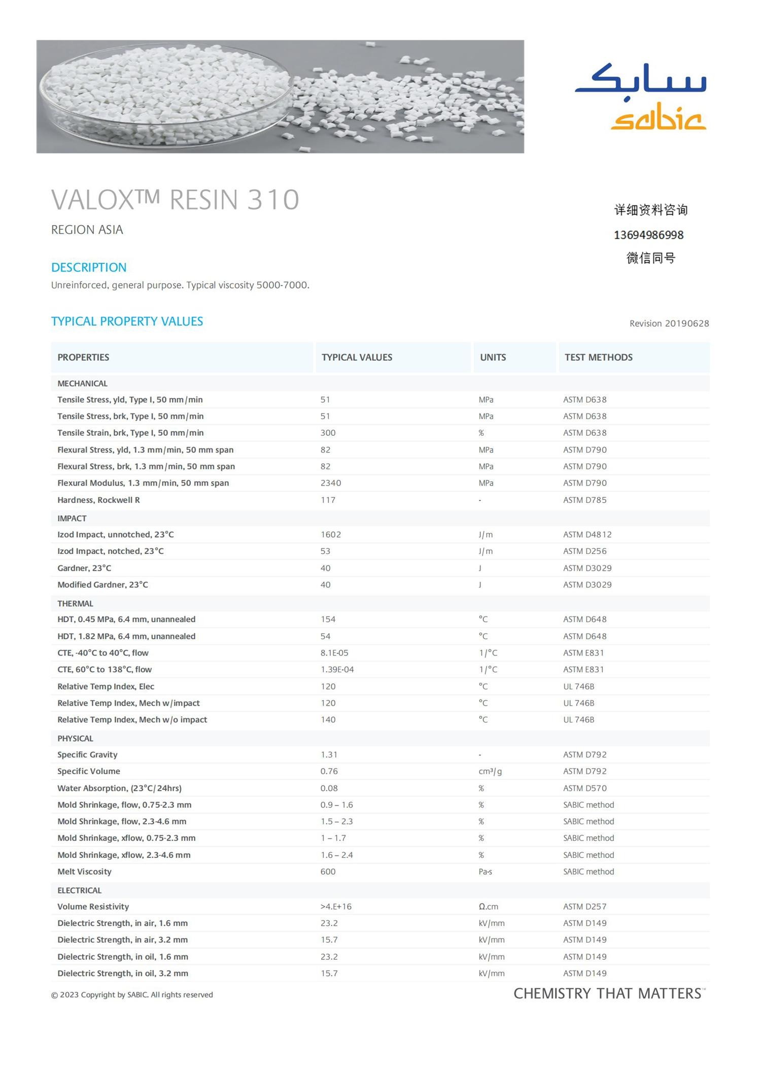 VALOX Resin 310HP SABIC 食品級(jí) 聚對(duì)苯二甲酸丁苯二甲酸酯(PBT)樹脂