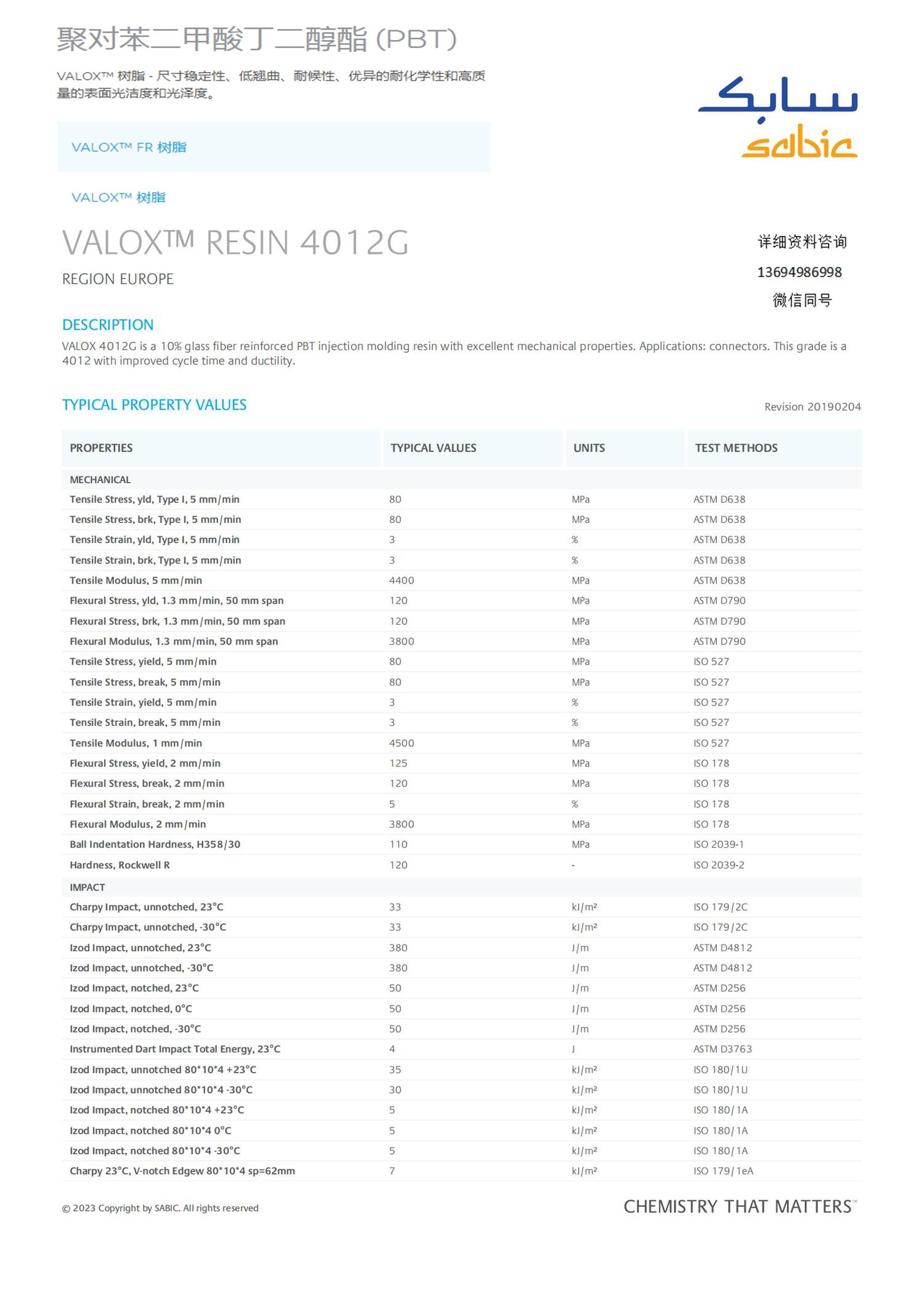 VALOX RESIN 4012G SABIC 10%玻璃纖維增強(qiáng)PBT注射塑樹脂