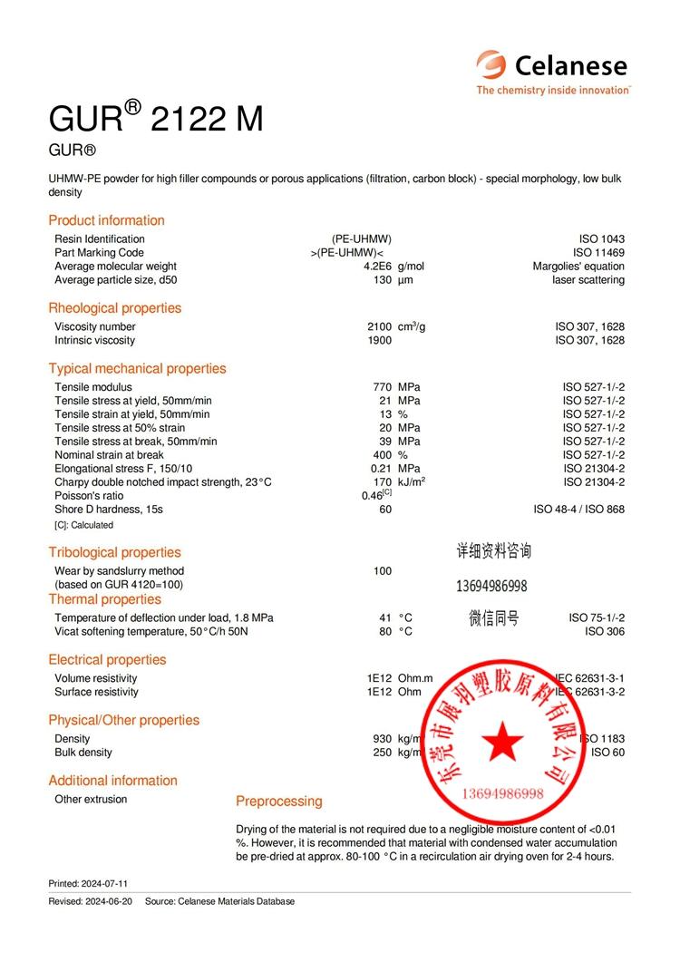 美國塞拉尼斯 GUR 2122 M 超高分子量聚乙烯 低堆積密度 UHMW-PE 粉末級(jí)