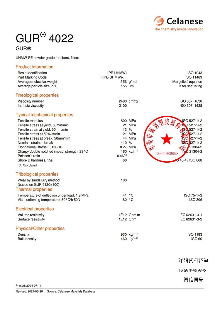 UHMWPE 美國塞拉尼斯 GUR 4022 (超高分子量聚乙烯) UHMW-PE粉末級