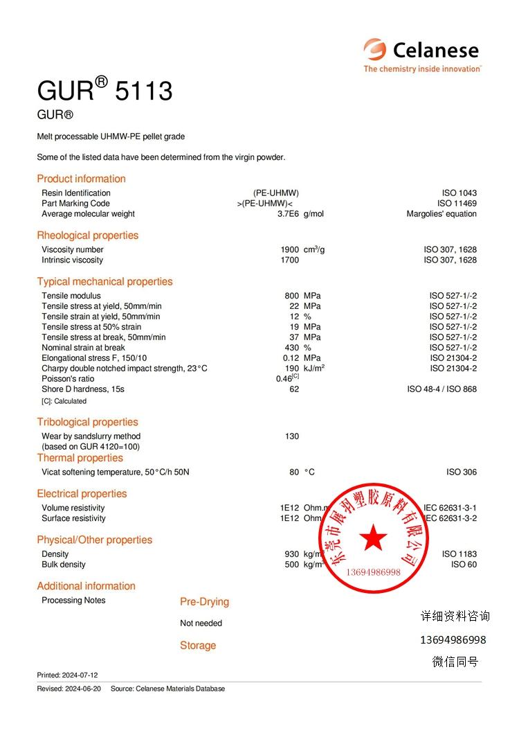美國塞拉尼斯 GUR 5113 可熔融加工的 UHMWPE顆粒 超高分子量聚乙烯