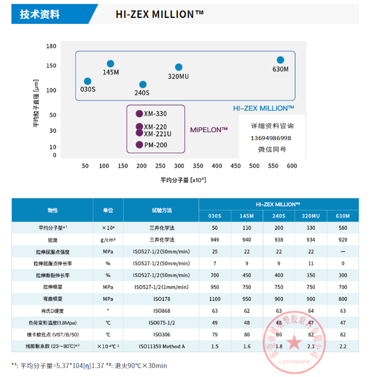 HI-ZEX MILLION 340M Mitsui Chemicals UHMWPE 超高分子量聚乙烯