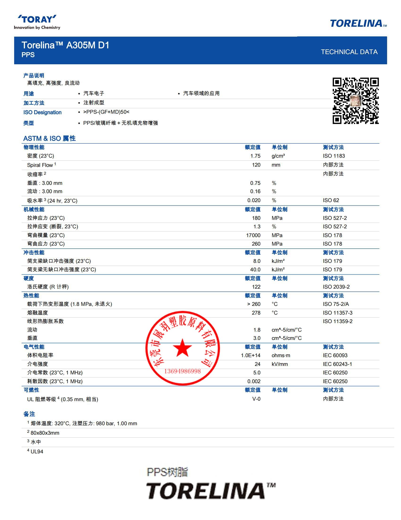 TORELINA A305MD1 Toray 高流動 50%礦物纖維和玻璃纖維 聚苯硫醚(PPS)