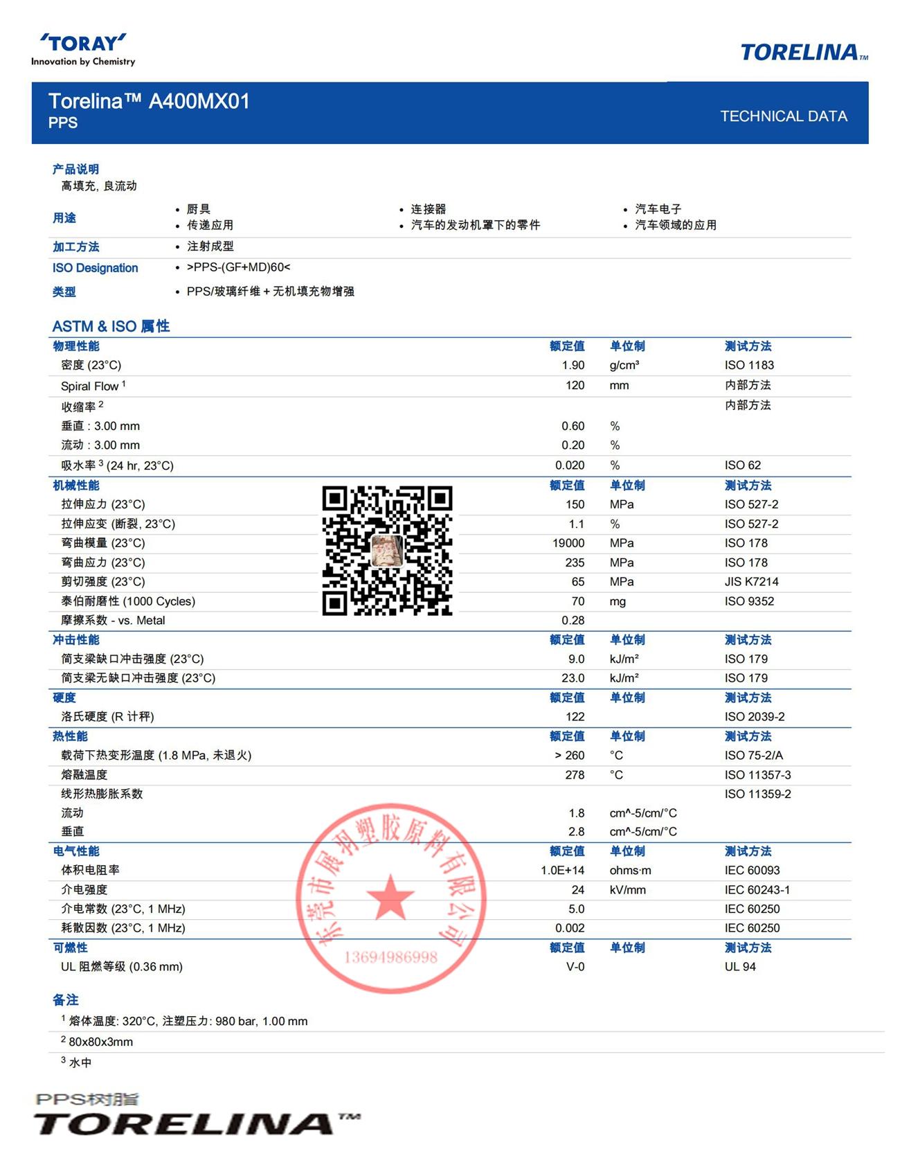 TORELINA A400MX01 Toray PPS-(GF+MD)60 聚苯硫醚 60%礦物玻璃增強(qiáng)