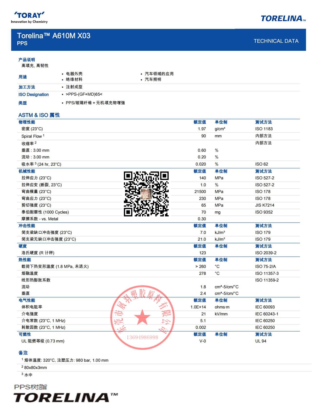 TORELINA A610MX03B Toray PPS-(GF+MD)65 高填充 高韌性 聚苯硫醚
