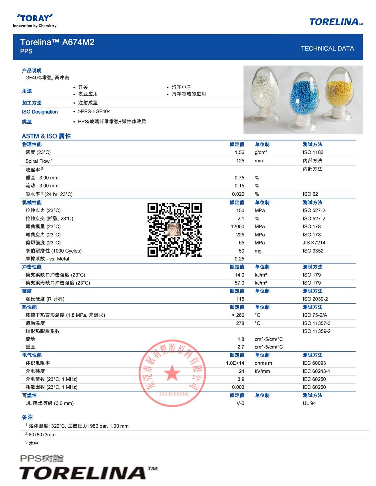 TORELINA A674M2 日本東麗 PPS-I-GF40 高韌性 阻燃性 40%玻纖增??強(qiáng) 聚苯硫醚