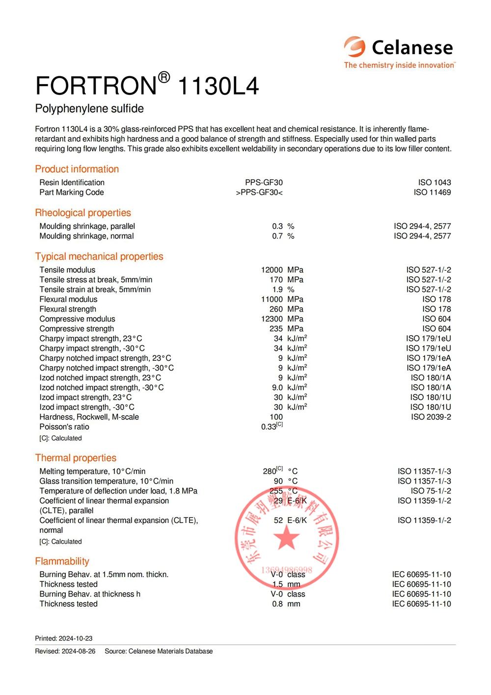 FORTRON 1130L4 (PPS-GF30) 30%玻璃增強(qiáng) 可焊性 阻燃V-0 聚苯硫醚