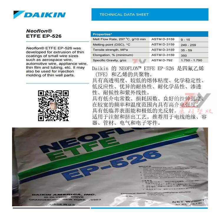 NEOFLON ETFE EP-526 Daikin 日本大金 四氟乙烯(TFE)和乙烯的共聚物