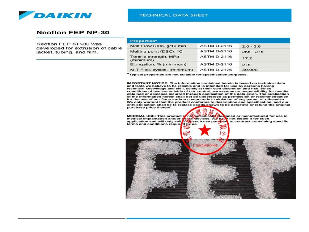 NEOFLON FEP NP-30 日本大金 新氟聚氯乙烯 厚墻線 電纜絕緣 護(hù)套油管
