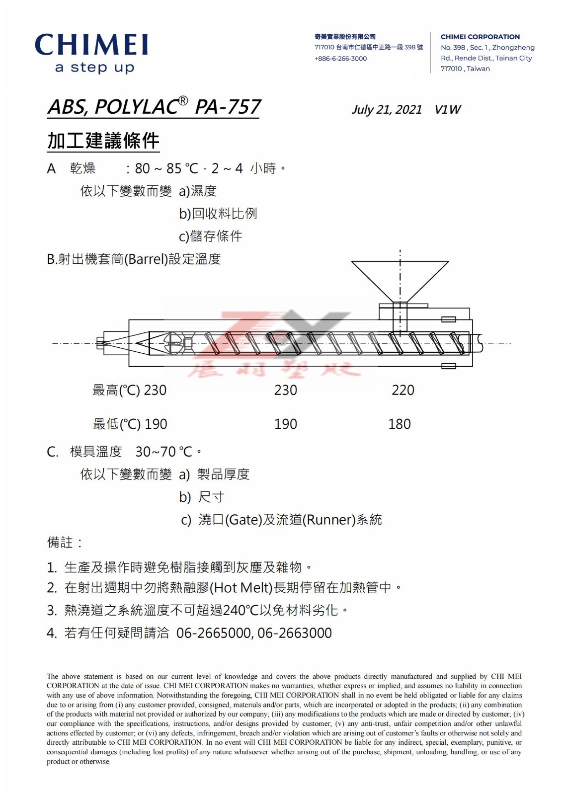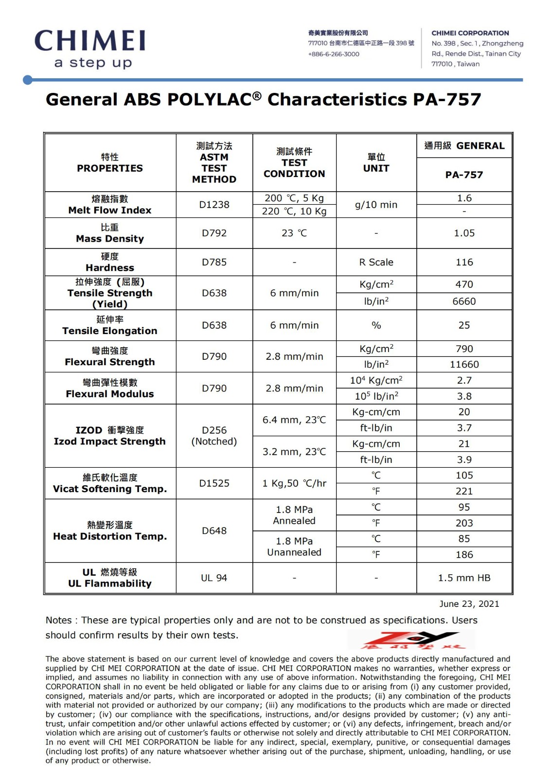 臺灣奇美 PA-757 高剛性/高光澤性/中沖擊強度/ABS樹脂