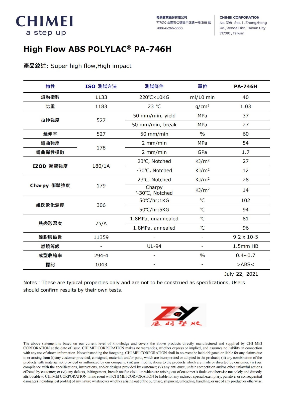 臺(tái)灣奇美 PA-746H 高流動(dòng)性ABS 高抗沖擊性 薄壁且高沖擊強(qiáng)度產(chǎn)品