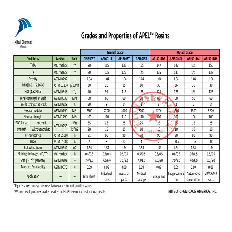 三井化學(環(huán)烯烴COC特性用途)環(huán)烯烴共聚物樹脂