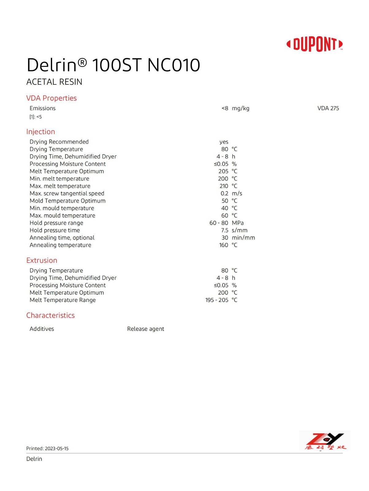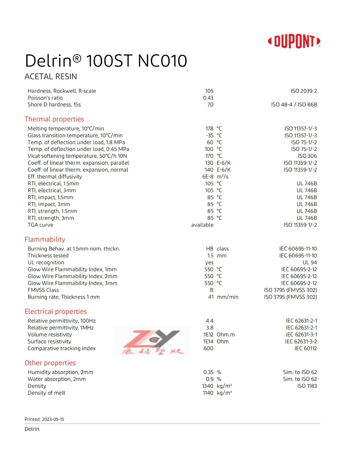 Delrin 100ST NC010 英文物性表, 美國杜邦100ST物性表, POM100ST物性表,POM美國杜邦100ST原廠物性,美國杜邦聚甲醛物性數(shù)據(jù)。